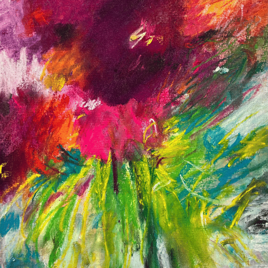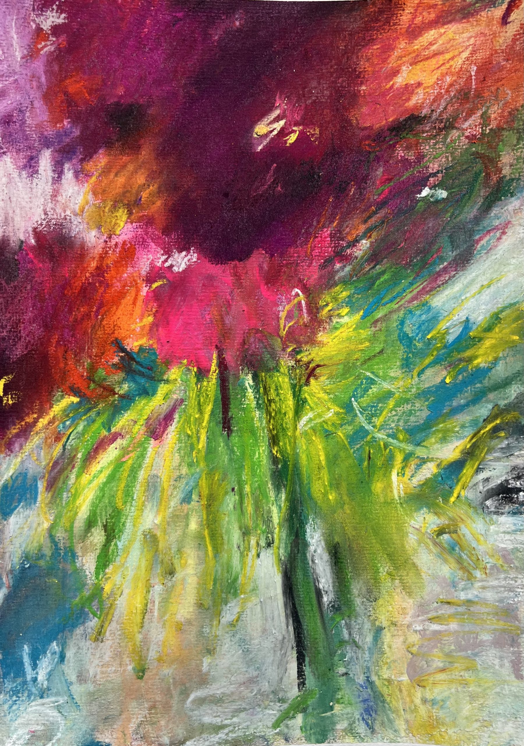 Oil, soft pastel and mixed media on paper, can be professionally mounted on archival card or framed.