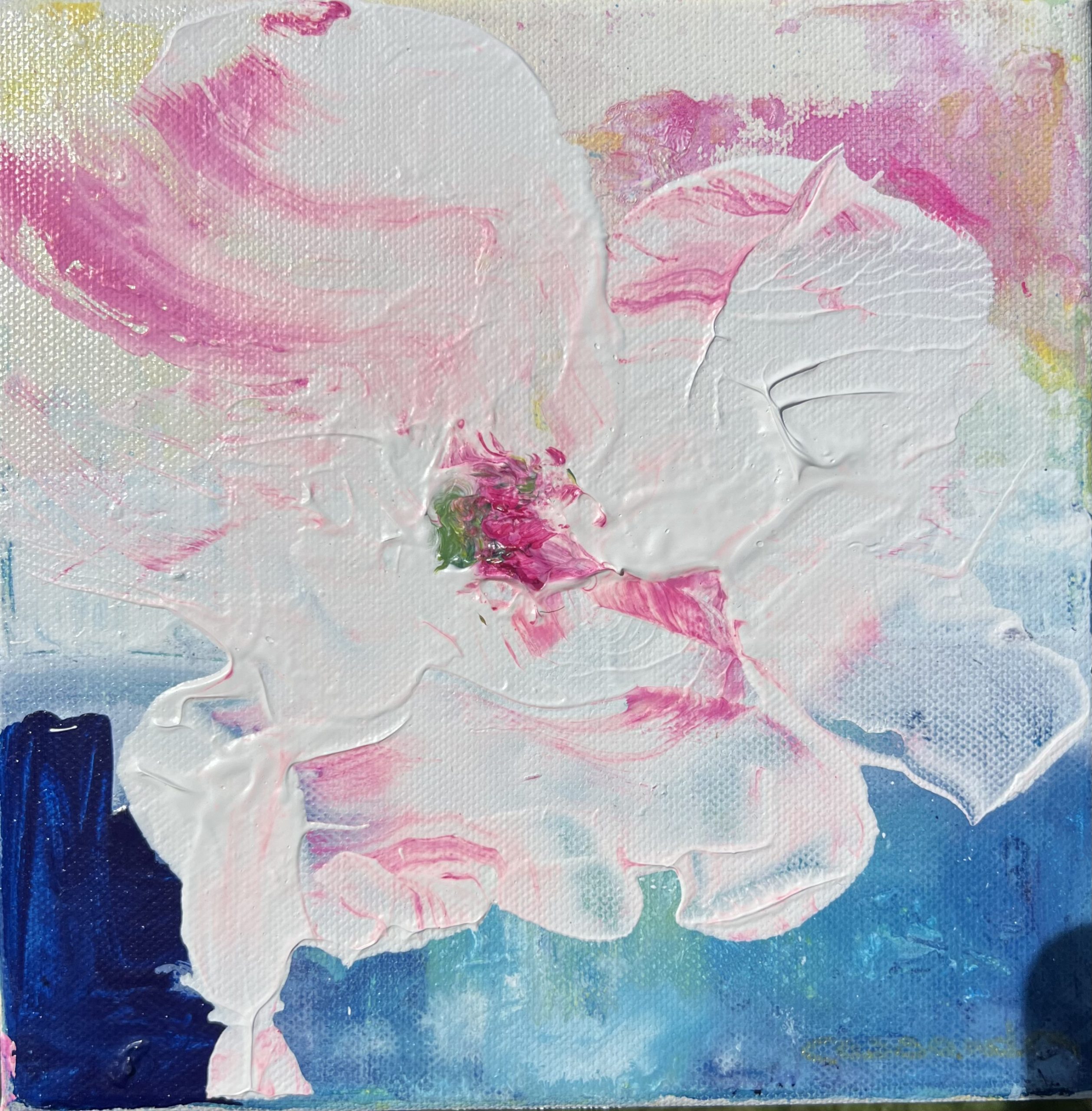 Each work is 8×8 inches and 1.5 inches deep, (20 x 20 cm, 4 cm deep) triple primed on 100% cotton, ready to hang.