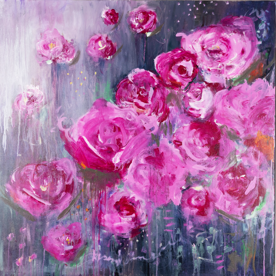 People often ask, how do we choose a painting name? Perhaps it’s a bit like a child. You may have a name in mind and then the child is born and they just seem altogether a different person. This is why I’ve changed the name of my painting from Divinity to “kissed by a rose”. Which rose? Well, that’s up to you:)