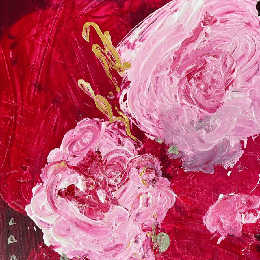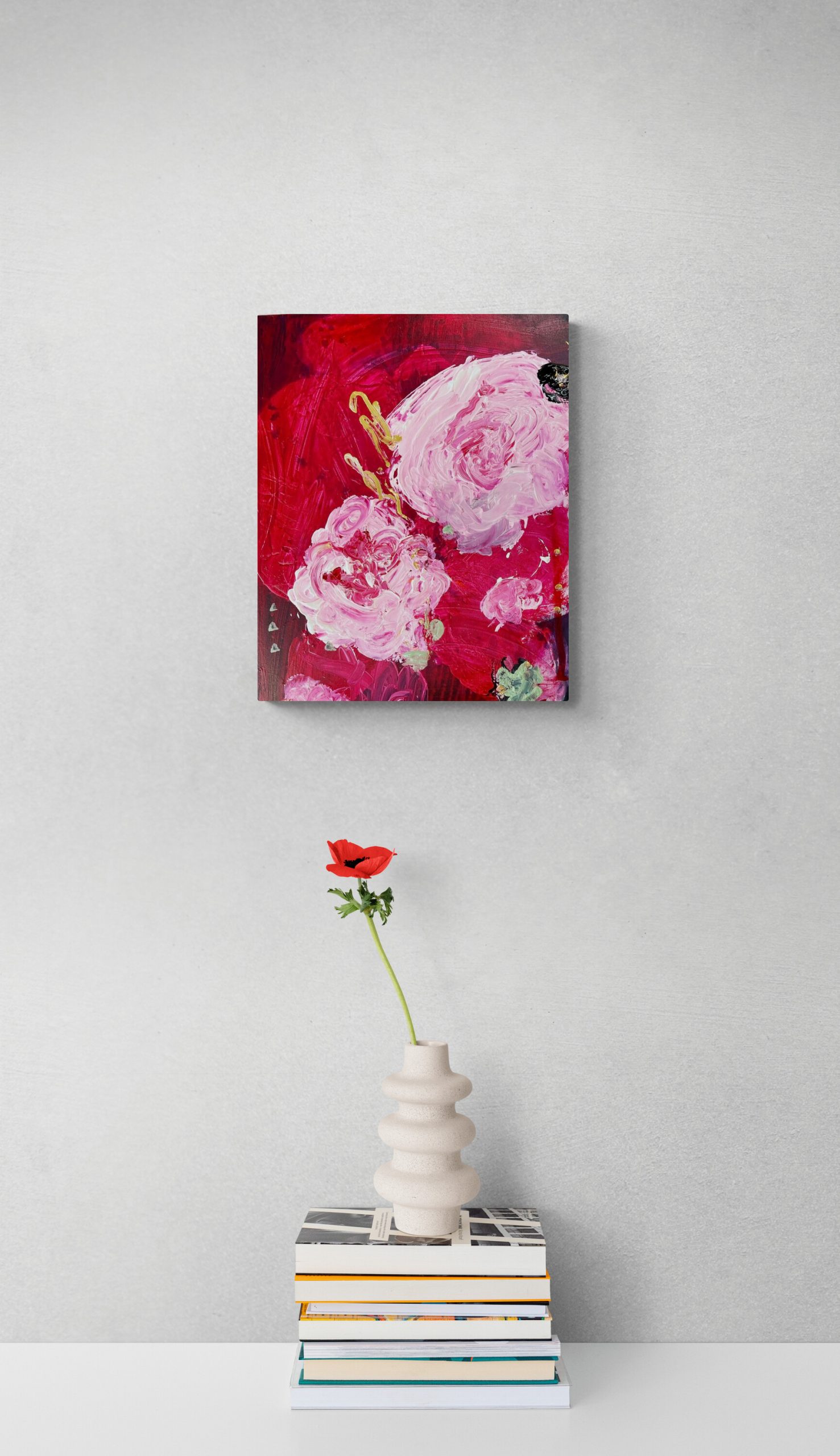 This original abstract beauty, bursting with luscious pinks and passionate reds, is now available—and yes, international shipping is a breeze!