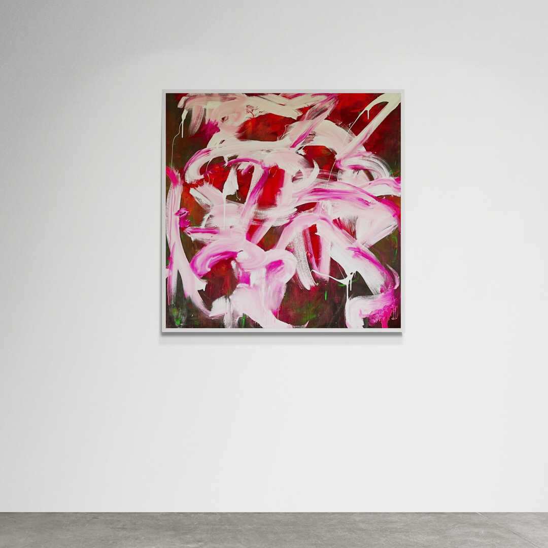 Painted amidst a tempest on July 4, 2025, Love in Full Bloom is both a rebellion and a benediction—a storm rendered in blush and ivory. With sweeping, impulsive gestures and a palette trembling between surrender and defiance, this large-scale work becomes a site of catharsis. Here, pinks and whites collide like opposing desires—passion and peace, release and restraint—capturing the tension that births transformation.