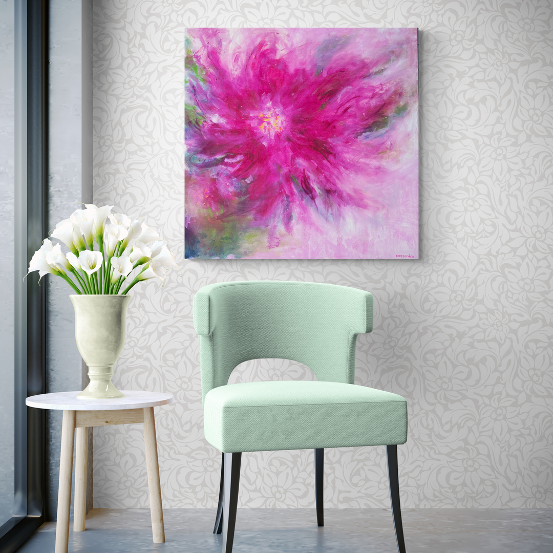 The painting has been created on artist-quality 100% cotton canvas and finished with a double coat of UV-resistant satin varnish, protecting the longevity and enhancing the vibrancy of the colours.