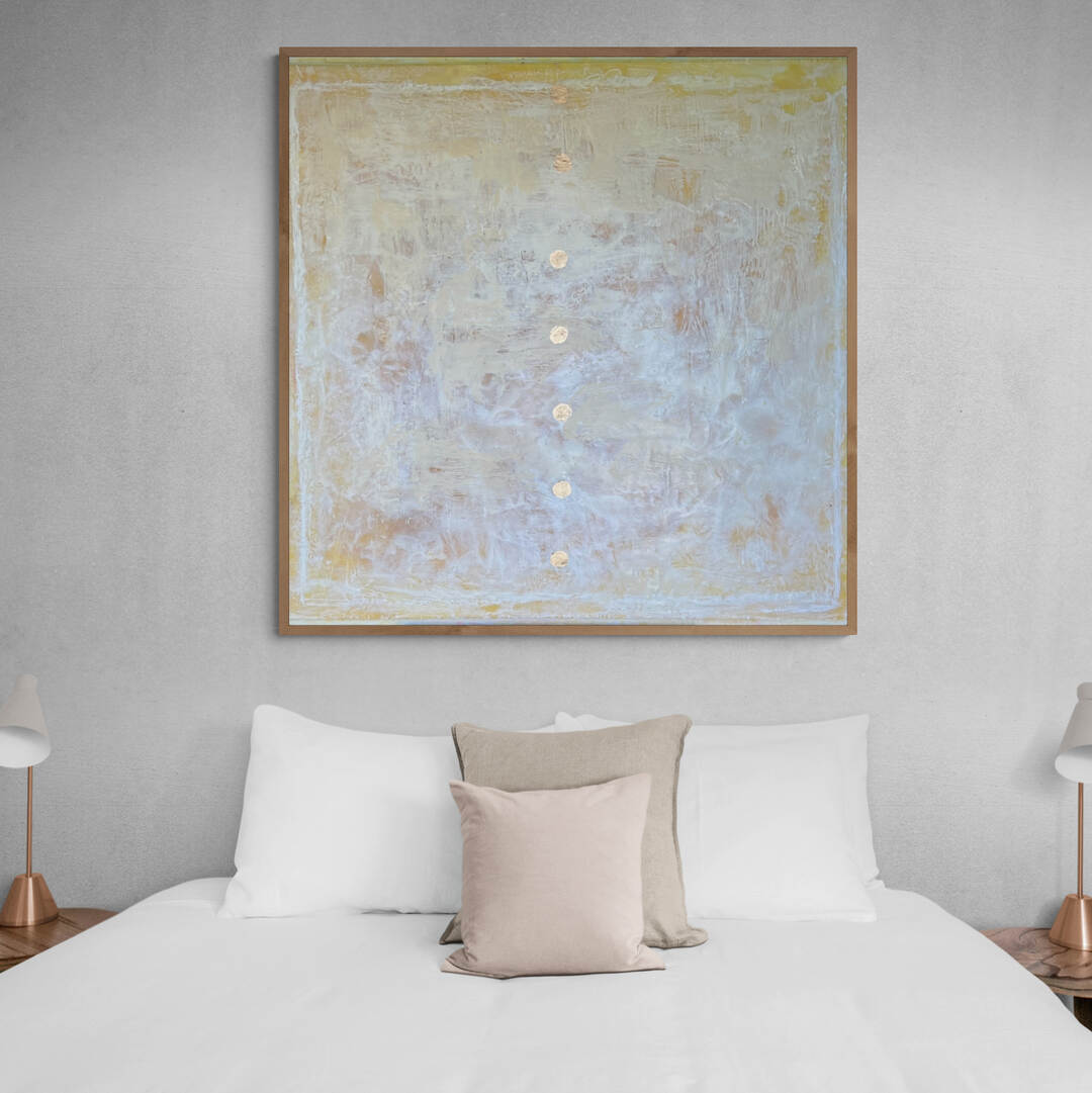 The painting has been created on durable hardboard and infused with many layers of beeswax protecting the longevity and enhancing the vibrancy of the colours.