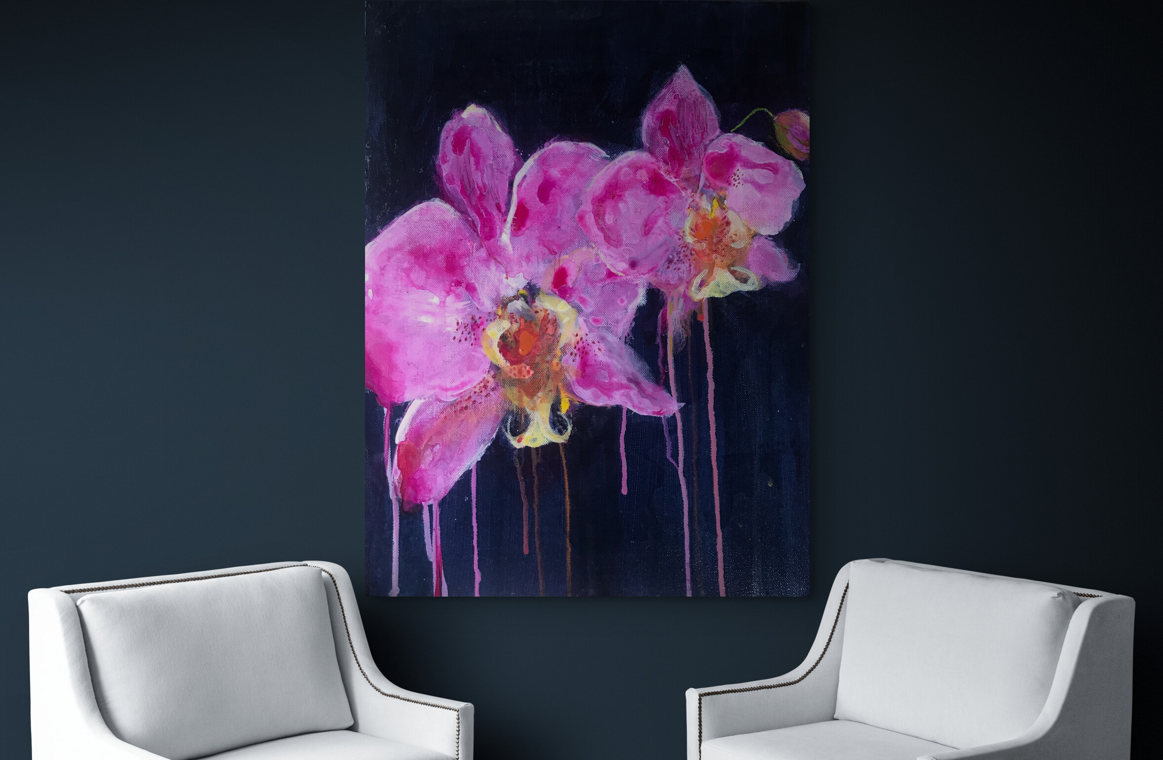 Orchid Botanical Painting by Cassandra Gaisford. Bring beauty into your home with vibrant art. Feel happy and uplifted. Pops of brilliant beautiful colours will bring joy to your home and life.