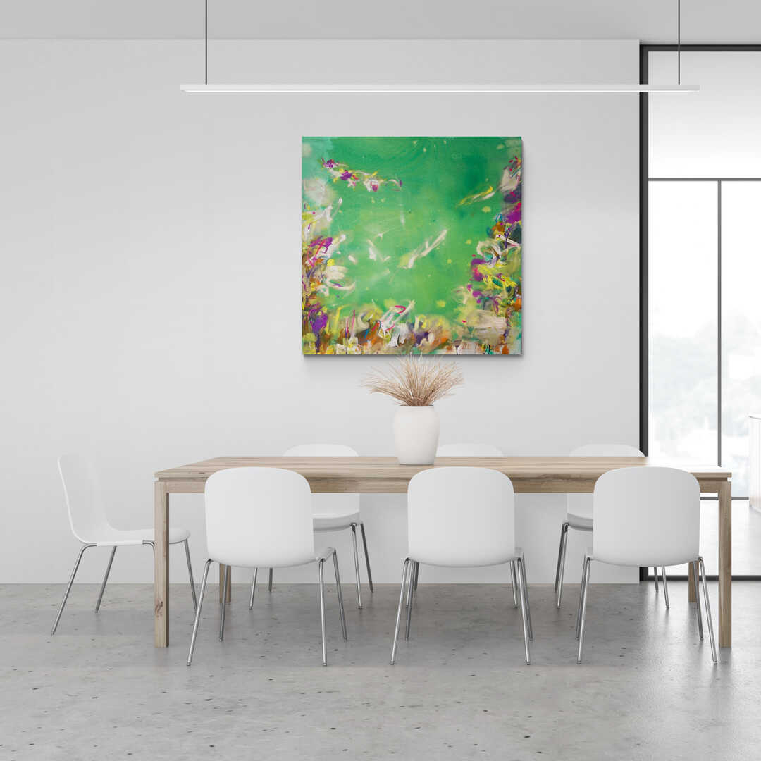 Medium, Subject Matter, and Style: Acrylic and mixed media allow me to layer textures, capture fleeting moments of light, and create a sense of movement that mirrors the ever-changing nature of the world. The vibrant greens, wild strokes, and bursts of color echo the chaotic order of a garden in full bloom, a place where life thrives without restraint. The abstract style, with its loose, expressive gestures, reflects the unpredictable dance of nature, a reminder that beauty often lies in imperfection and spontaneity.