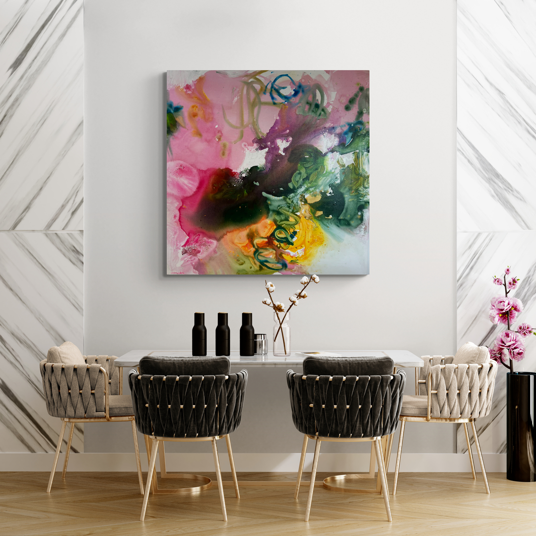 The painting has been created on artist-quality 100% cotton canvas and finished with a double coat of UV-resistant satin varnish, protecting the longevity and enhancing the vibrancy of the colours.